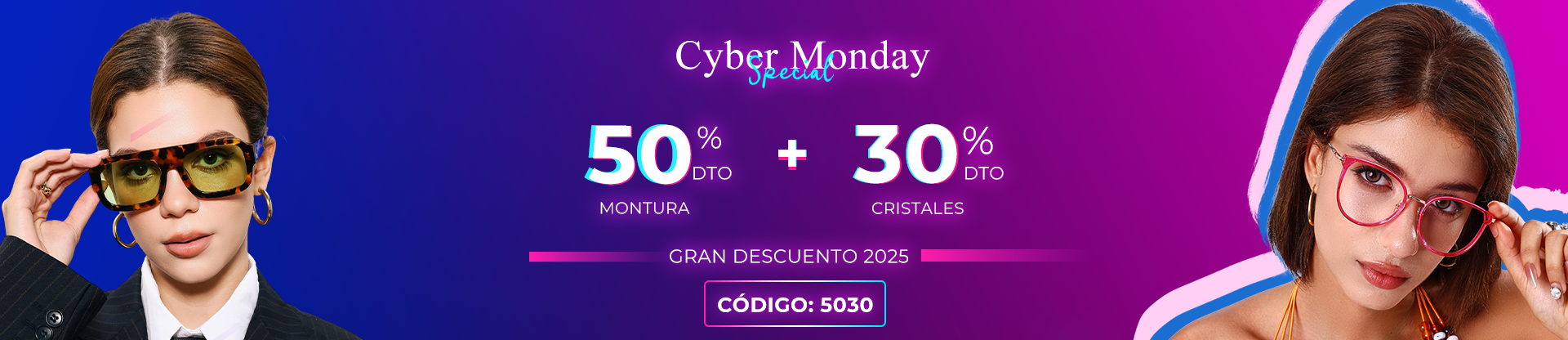 1. Los productos de esta página aplican 50% en monturas + 30% en lentes.